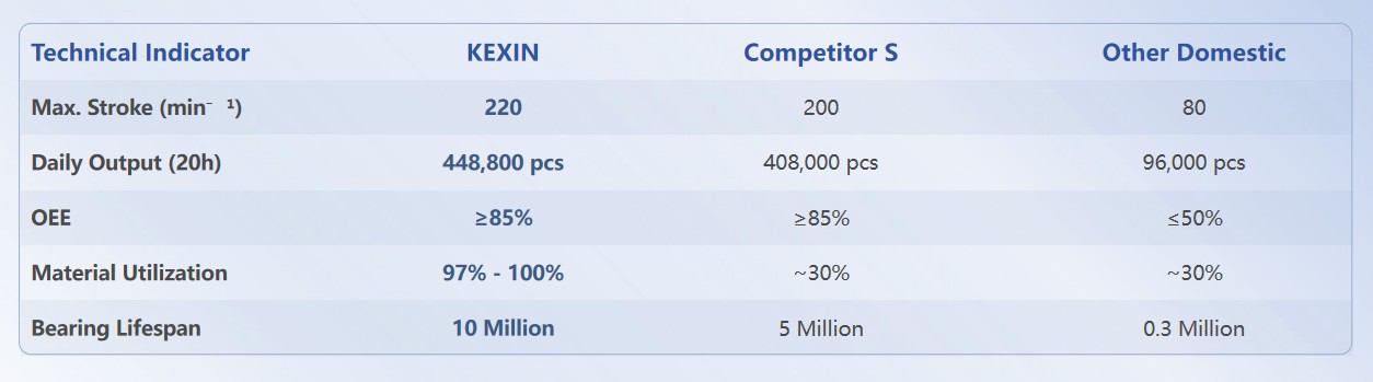 KEXIN dominates in speed, output, material savings, and machine longevity.